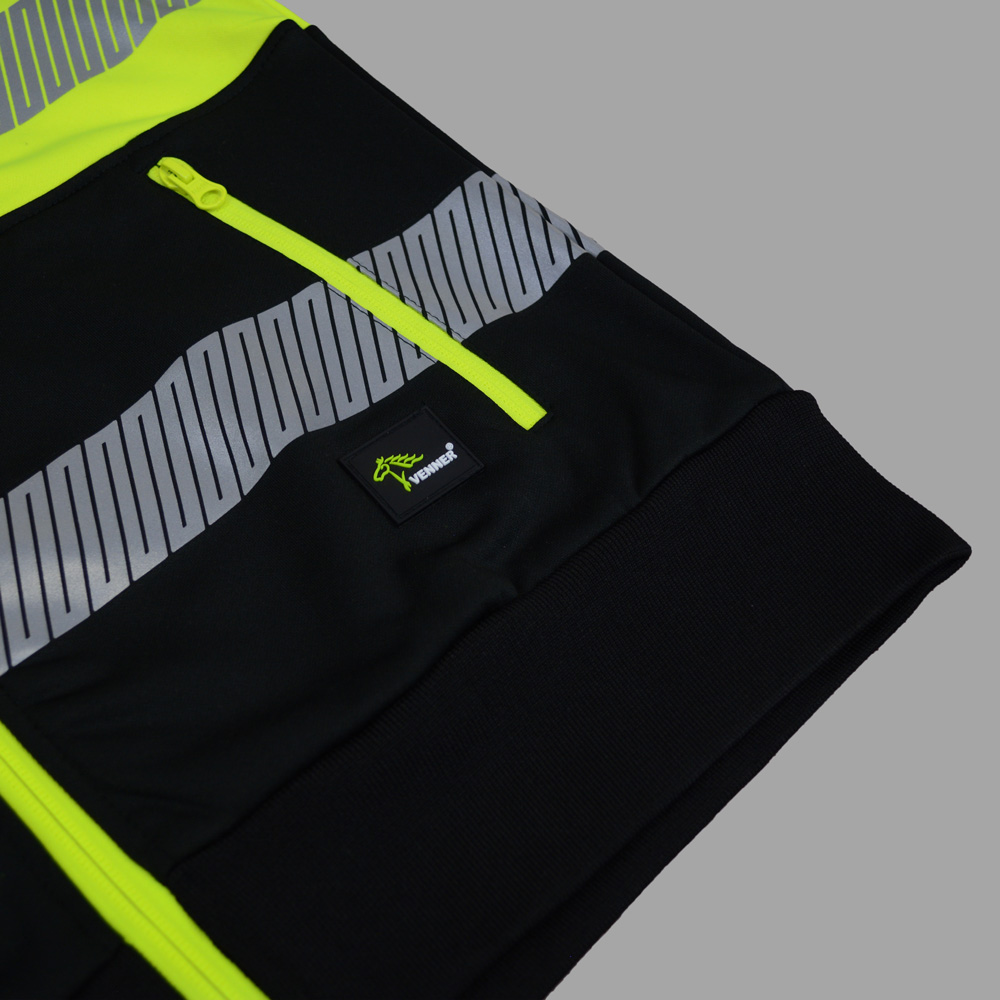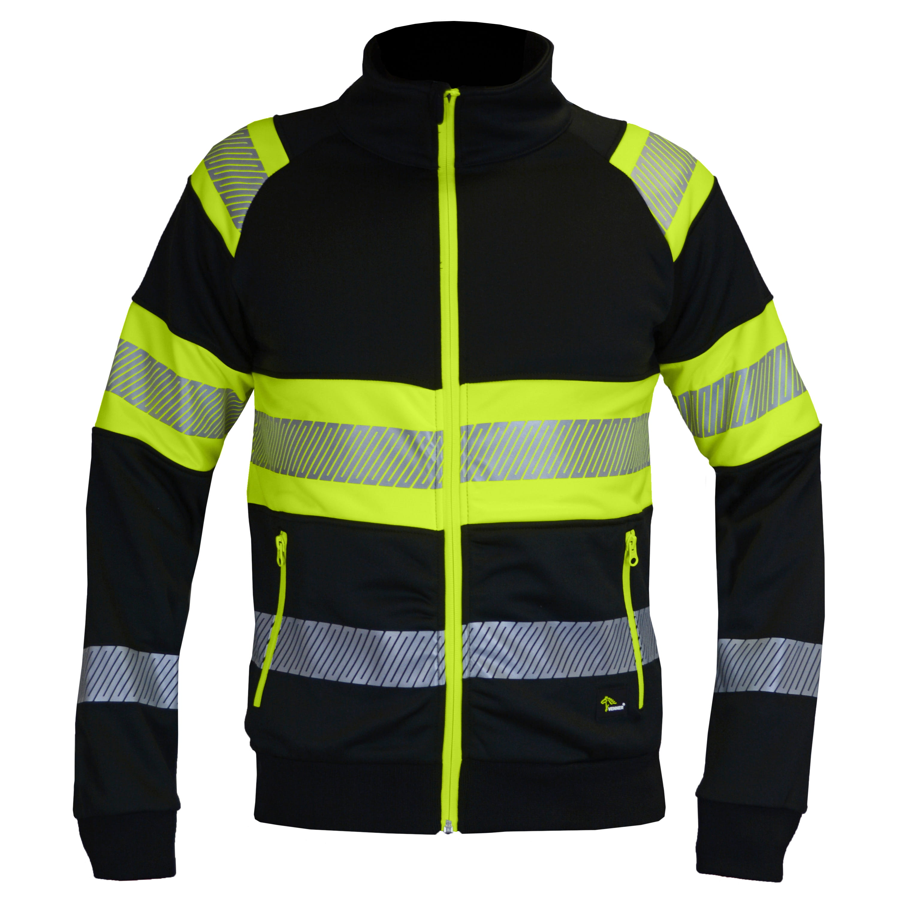 Juodos spalvos džemperis be gobtuvo Reflex, su signalinėmis juostomis. Šis darbininis džemperis sujungia matomumą, praktiškumą ir komfortą į vieną gaminį.
