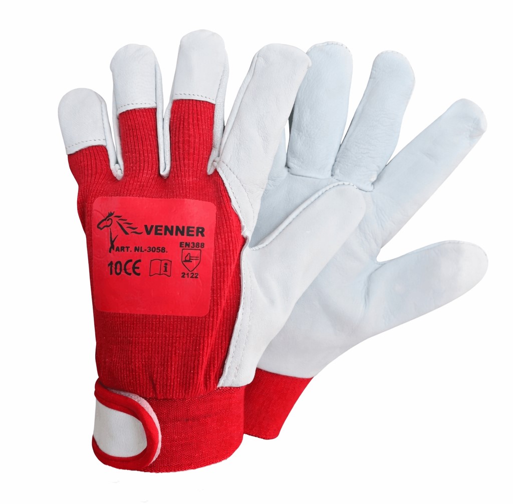 Trikotažinė išorinė dalis: Raudonos spalvos elastingas trikotažas užtikrina patogų prigludimą prie rankos bei kvėpavimą, sumažindamas prakaitavimą net ir karštomis darbo sąlygomis.