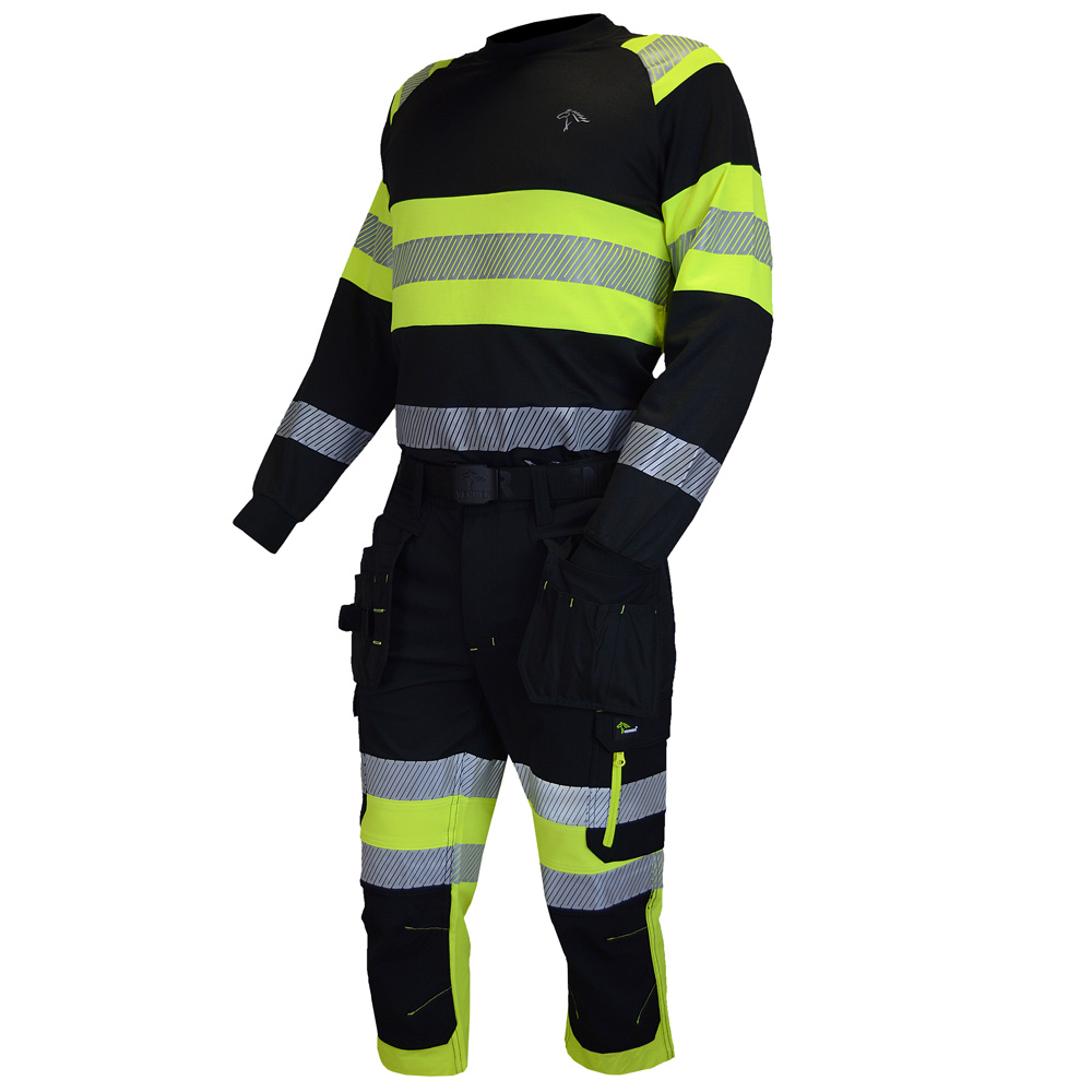 Juodos spalvos darbo marškinėliai ilgomis rankovėmis, su signalinėmis juostomis. Šie marškinėliai sujungia matomumą, praktiškumą ir komfortą į vieną gaminį.